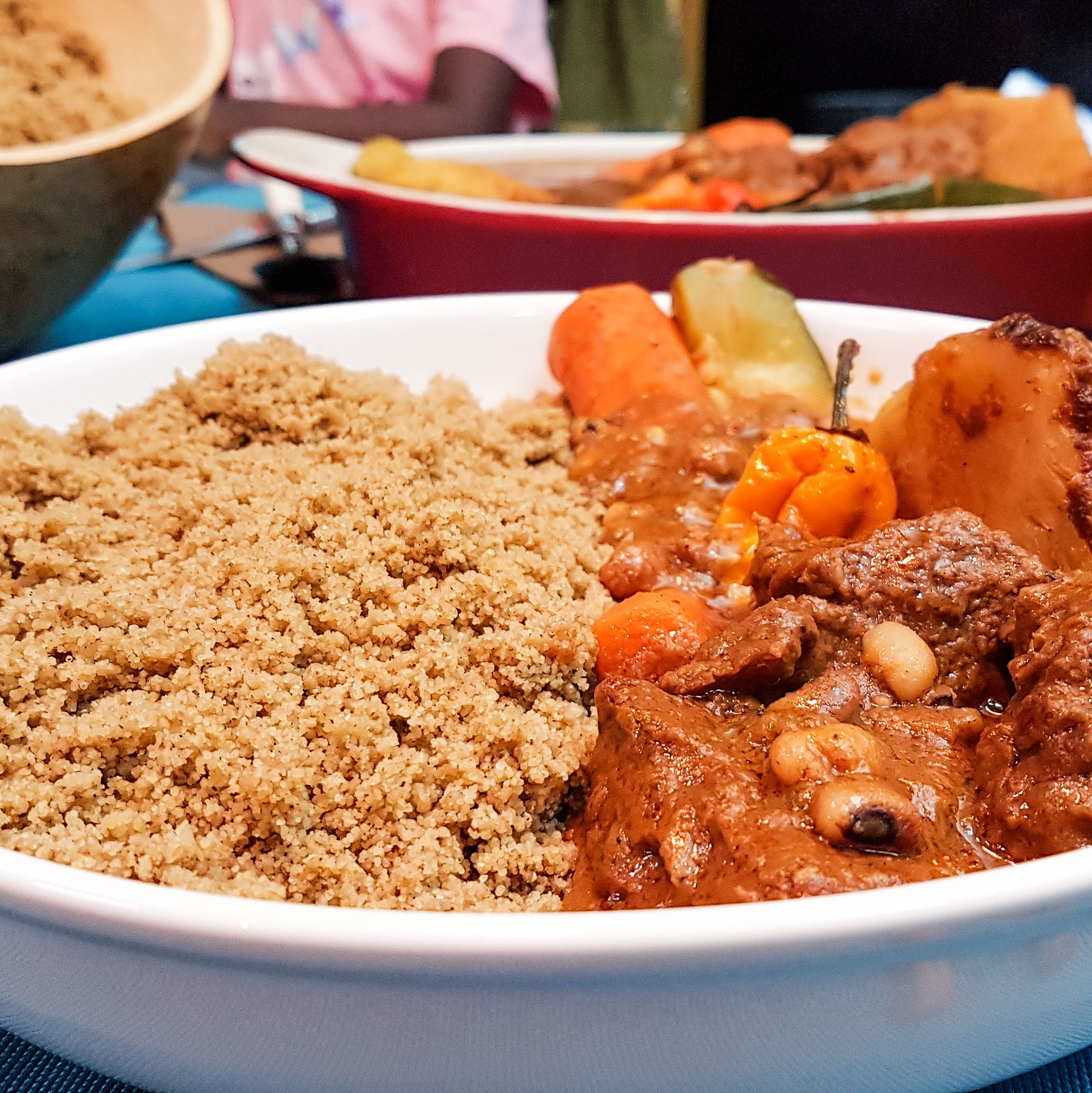 Il s’agit d’un gâteau à base de mil ou de maïs. Complètement écrasé et agrégé à l’eau bouillante, il est servi avec de la sauce gombo*. En gros, le Tô est un plat plutôt fade (et bourratif).