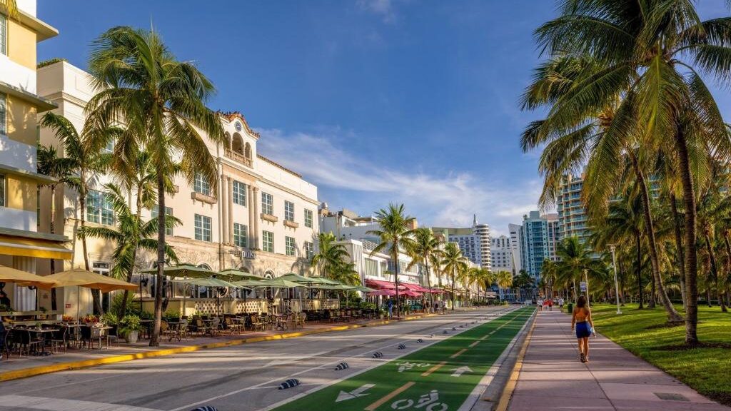 South Beach à Miami Beach, en Floride, est une destination iconique. L’architecture Art déco aux tons pastel des années 1930 caractérise la région. Les plages de sable blanc bordées de palmiers attirent les amateurs de soleil et de sports nautiques. La vie nocturne est animée avec Ocean Drive qui s’illumine après le coucher du soleil, offrant des restaurants en plein air et des discothèques. La scène culinaire est variée, proposant des spécialités cubaines et des fruits de mer frais. L’art, la culture et les festivals sont également présents, faisant de South Beach un mélange dynamique de plage, de divertissement, de gastronomie et de style.
