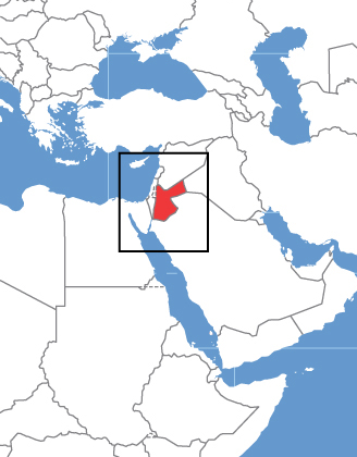 Il s’agit du territoire en rouge sur la carte ci-dessous ! La Jordanie, petit pays de 89 342 km² (soit la moitié de la superficie de la Tunisie) se trouve en Asie et au plus exactement au moyen-orient. Il partage ses frontières avec les territoires suivants : l’Arabie saoudite, l’Irak, les Territoires occupés et la Syrie. La Jordanie possède également 26 km de littoral le long du golfe d’Aqaba et de la mer Morte.
